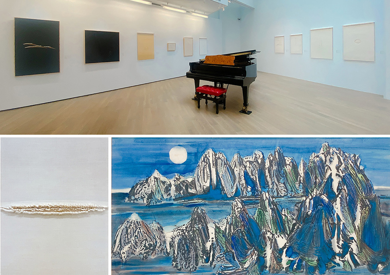 1990到2010年為淨化時期,此階段創作凸顯了大面積留白,以單色紙材、布料表達了平面創作的多元空間特質,構圖隱隱透露出過去人生的感悟沈澱及老莊禪意的東方哲思。2010年以後為即興時期,像是將意想不到的日常用品棉花棒化為創作媒材。