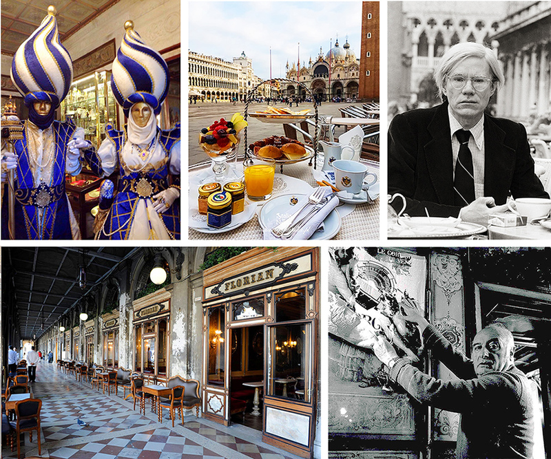 Caffé Florian(弗洛里安花神咖啡館)被認為是歐洲最古老的咖啡廳,由Floriano francesconi(佛洛里安)創立。咖啡聽的裝潢以十八世紀的藝術風格為主,內部有分為幾區不同主題的房間,分別有中式廳 (The Chinese Room)、參議院廳 (The Hall of the Senate)、東方廳(The Oriental Room)、四季廳 (The Hall of the Season)、自由廳 (Liberty Room)。Caffé Florian(弗洛里安咖啡館),也是當時唯一接待女性的聚會場所,因此義大利作家也是18世紀歐洲情聖的Giacomo Casanova(卡薩諾瓦)時常來光顧咖啡廳。著名的詩人Lord Byro(拜倫)、《雙城記》作家Charles Dickens(查爾斯.狄更斯)等多位文人雅士都是Caffé Florian(花神咖啡館)的座上客。喜劇泰都Charlie Chaplin(查理.卓別林)、經典童話《美女與野獸》電影法國導演Jean Cocteau(尚・考克多)、鋼琴家Arthur Rubinstein(魯賓斯坦)到普普藝術大師Andy Warhol(安迪.沃荷),都曾到此造訪過;而以廣告海報拼貼畫聞名的義大利藝術家Mimmo Rotella曾將自己的作品展示在咖啡廳內。
