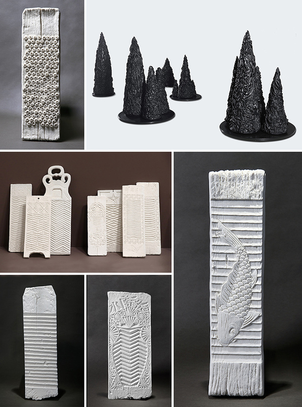 In 2017, her “Heart Dirt” series explored the possibilities of applying black ink to the fired surface. Once fired, porcelain is very porous while it remains unglazed. Liu sprayed or brushed Indian ink over each form, which was absorbed instantly. Explaining her use of this black/white, yin/yang binary she says: