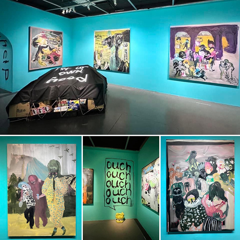 In this exhibition, the artist Chang Ling has chosen to showcase his long-term creative focus, the “Illusion “Society” series. These works depict various aspects of daily life and human nature throughout history, revealing the true desires hidden beneath the illusory reality and presenting another narrow and distorted reality beyond our current one. Through the use of dramatic and vivid brushstrokes, the artist portrays the fear and anxiety people face in unknown situations or the willful ignorance of continuing their mad lifestyles. The artist reassembles the collective memory through a subjective lens, covering and altering history in a way that creates a new interpretation.