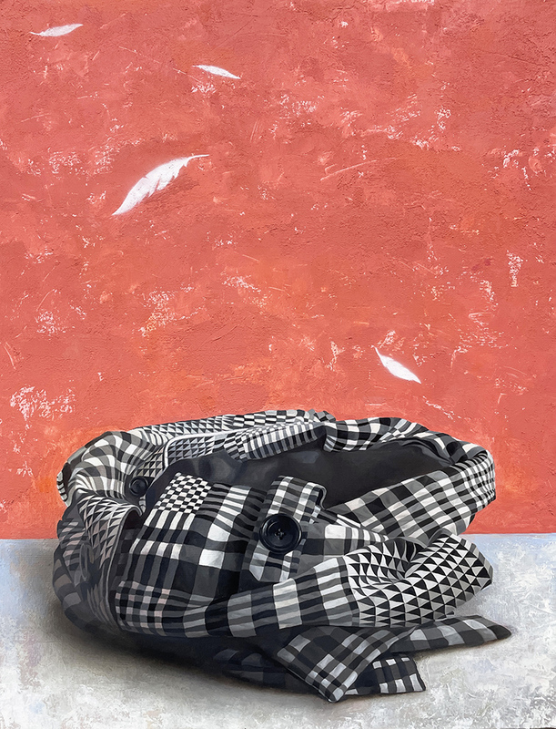 Yeh Che-Yu’s works in this exhibition originate from his study of folds in materials such as fabric and paper found in his studio. Artist Kao Chien-Hui opens In the Name of Fetishism with the words: “In the name of fetishism, we cherish objects, landscapes, and people—each leaving behind vivid physical traces.” Yeh’s works Clouds at Rest and Dulan serve as such tangible testimonies of attachment to place, attempting to reconstruct the landscapes of Taiwan’s eastern coast within limited space. In Clouds at Rest, Yeh integrates sand collected from Jialulan Beach into the painting itself, transforming found objects into part of the work’s materiality. Meanwhile, Birthplace extends the notion of attachment to the idea of a “lover.” The black-and-white object at the bottom of the composition is a coat sewn by a family member, its form resembling a nest. By juxtaposing clothing with a bird’s nest, the work metaphorically expresses longing for familial warmth. Yet the absence of the “lover” in the painting also reflects the experience of displacement—where emotional connections must be transferred onto objects.