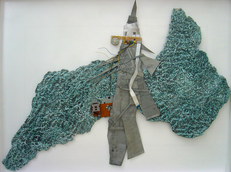 oil paint, wood, metal, acrylic colors 60 x 60 cm