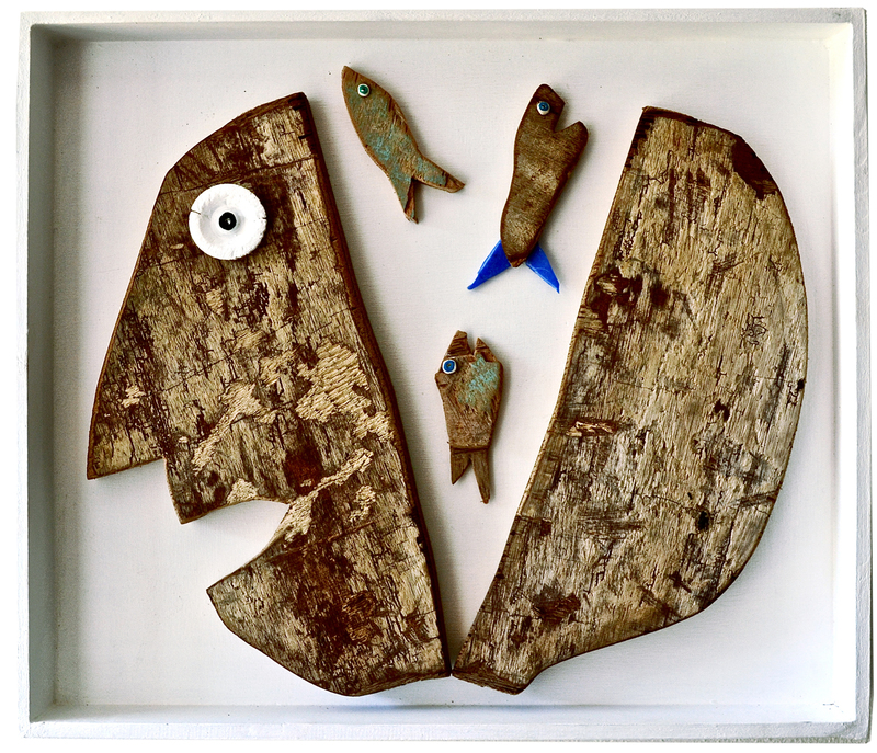 Monica Miceli (1963-), was born in Tripoli, Libya, and now currently live in Italy. She began her career as an illustrator of children's books, publishing with San Paolo, Patmos and Negebauer, and exposing also in various cities of Italy. Presently she dedicates herself to create objects and sculptures recovering wood, pieces of plastic, rusty iron and anything else she finds along the beaches after the storms. Monica Miceli has exhibited at Fabbrica del Vapore in Milan with a personal exhibition entitled A (R) RIVA (2015), Vinoria, Chiavari (2014), Galata Museo del Mare, Genoa (2014), Artelier, Palazzo Ducale, Genoa (2013).