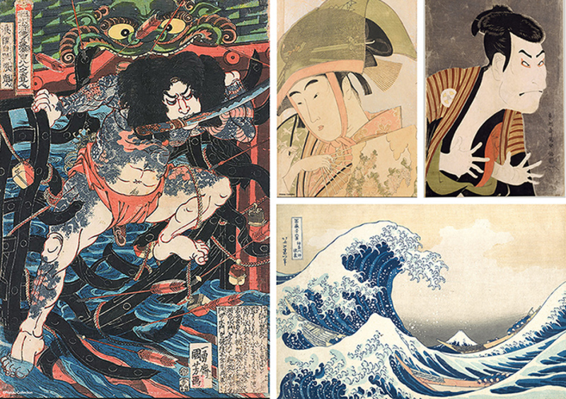 相信大家對浮世繪一點都不陌生,「浮世」一詞源於佛教,意指現世、塵世,被日本用於日常生活的繪畫,盛行於江戶時代,以版畫為主,也包括手繪作品。十九世紀,日本主義以浮世繪版畫及繪本方式,進入了西方世界。浮世繪的創作方式衝擊了西方人對於藝術創作的想像,尤其此創作技巧以顏色、線條營造出空間感,表現出透視遠近關係,重新活絡了古典印象派的創作方式,畫面更加強調多視點的物體帶出的寬闊度。我們也可以從梵谷、莫內等許多知名藝術家的繪畫中,看出此時日本主義對於西方藝術的深遠影響,尤其在構圖、創作元素等方面。舉例來說,梵谷的《阿爾勒城外果樹開花》便是借鑑了葛飾北齋的《富嶽三十六景》構圖形式,兩幅作品樹枝的線條明顯勾勒出來。