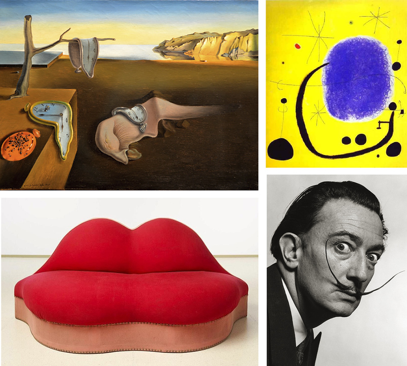 其中薩爾瓦多·達利 Salvador Dalí (1904-1989) 可說是無人能知,他與畢卡索、米羅被認為是西班牙20世紀最具代表性的畫家。達利的作品一直和夢、潛意識有關,運用擅長的繪畫技巧讓現實與夢境結合,甚至嘗試各種方式讓自己處於夢與現實的交界,將不合邏輯的事情與現實結合。在他出身前曾有一個與他同名的已故哥哥,父母把達利當作哥哥轉世造成他一度認為自己是替代品,17歲時母親因病去世更讓他造成打擊。達利積極研究古典派、印象派、立體派等當時盛行的流派,為了致敬畢卡索還繪畫出《岩石上的女人》。他原本就讀於皇家聖費爾南多美術學院但因為煽動學生鬧事而被停學。