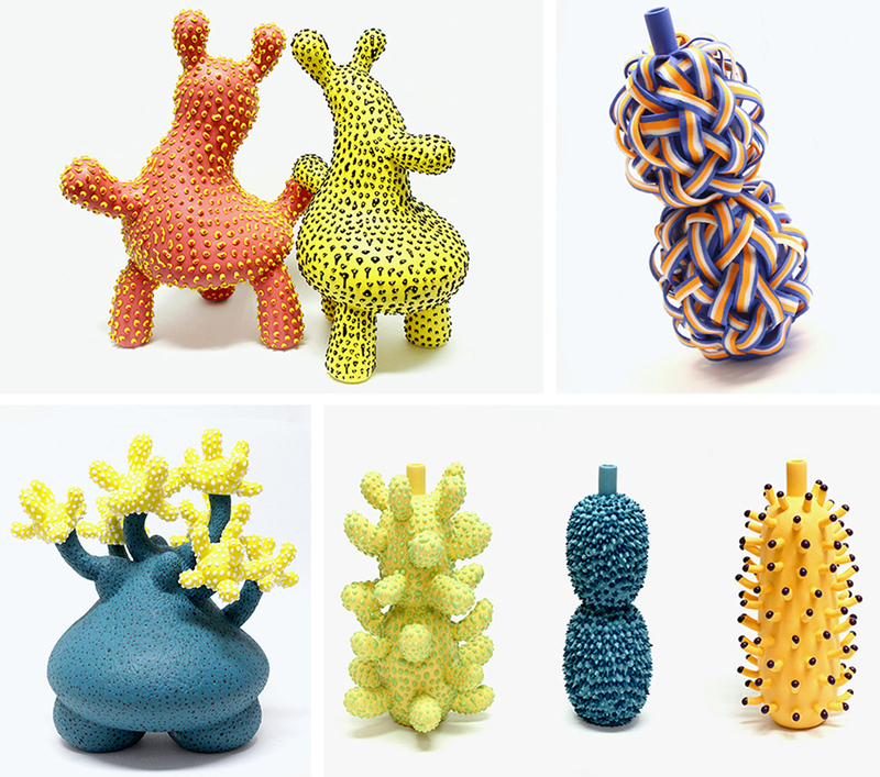 「Tasty Collection」是個有趣的系列;作品試圖去質疑我們如何記住記憶中的味道,以及如何將視覺上的感官轉化為物體,設計動機源自於Ahryun的童年是如何建立對味道的記憶與感知。發現「觸覺」在孩提時期是形成記憶最有影響力的方式,專注在「觸覺」的議題上,藝術家想創造出極富想像力又能刺激感官的陶瓷物件,藉此帶來讓人能將感官連結的體驗,每個物件的表面、顏色都帶給觀者不同的想像,近而聯想到某種氣味或味道。靈感來源是想要表現對酸、甜、苦、刺激等味覺的抽象感覺,作品中的顏色與質地將這些抽象性的概念轉化為陶瓷中有形且充滿活力的視覺語言。這些獨特的物件,介於在功能性和非功能性之間,暗示了普通物件如何在功能之外進化出新的效用。Ahryun的每一件作品都是純手工製作,獨一無二且別具風味,不僅展現了精湛的工藝技術,而且還暗示了當代語境中物品的對話和敘事,同時回應了工藝、設計和藝術。