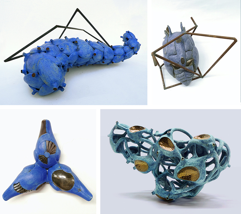 自然物的結構組成一直是讓藝術家林龍杰著迷的景象。 他關注自然物的解構組成與再生物,他將陶瓷媒材塑造成類似機械型態的生物體。以自身體驗做為靈感,將生活中的細微轉化為人造物。面對如今世代電子媒介訊息的介入與流竄,藝術家認為人們早已默默被改造當中,邁向不可知的未來。為此他擷取了植物和微生物的複數生長型態,局部植入人工符號,冀望能重新塑造不同的生物圖碼,塑造了《角渦》、《蛞》、《墨鰭》等作品,希望對於此議題做反思。
