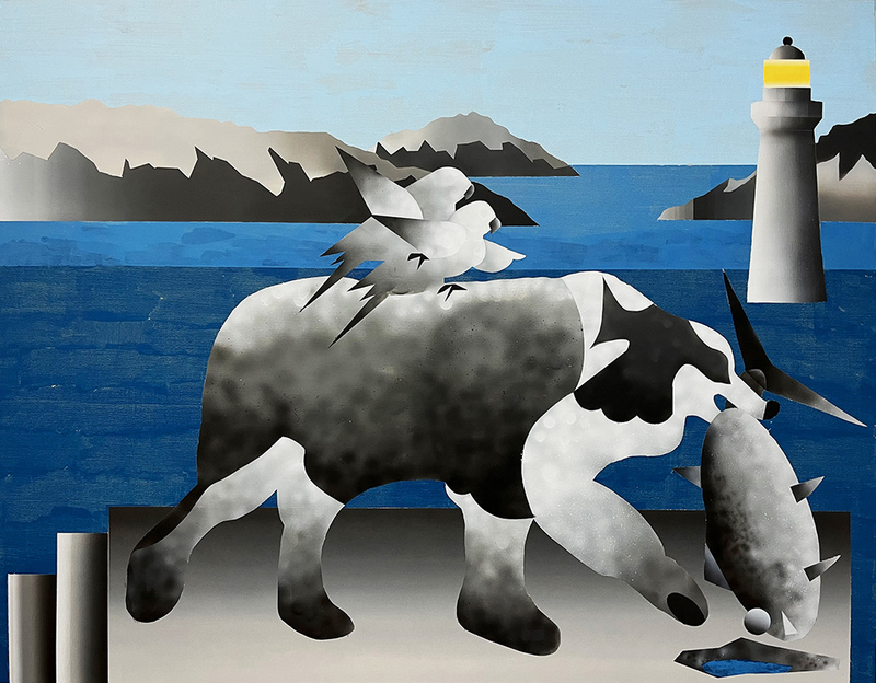 本次的創作系列以海為主,潘重光觀看了許多關於海的電影,包括北野武的⟪那年夏天寧靜的海⟫、保羅索倫提諾的⟪絕美之城⟫、或是李奧納多的早期的電影⟪海灘⟫,以海作為背景或是空間,講述著或是反烏托邦式的社會、人類毀滅之後海上建立的城市與繁衍,這些電影深深吸引著潘重光。大海營造出的反覆規律,浪花捲起思緒,潮起潮退間,在這片平靜的海上,一個接著一個的故事應運而生。