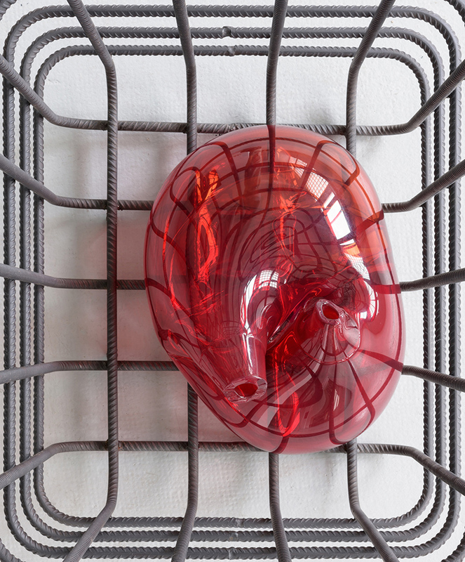 圖一:Mona Hatoum, Cellules (detail), 2012-2013, mild steel and hand-blown glass in eight parts. 170 cm, variable width and depth.Installation view at Galerie Chantal Crousel, Paris © Mona Hatoum. Courtesy Galerie Chantal Crousel, Paris (Photo: Florian Kleinefenn)