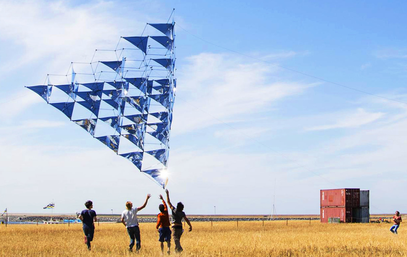 觀眾在大型網狀雕塑下走來走去,結實的繩索編織成無數個五邊形籠罩在頭頂,部分安裝上鏡面,映照出地上人們的一舉一動。這件作品叫做《動態雲城市中的靜止》(Stillness in Motion – Cloud Cities),去年於舊金山現代藝術博物館(SFMOMA)展出,是阿根廷藝術家托馬斯·薩拉切諾 (Tomás Saraceno) 根植於他的氣球計劃Aerocene,Aerocene不使用任何燃料、電池或氫氣造成浪費,只依靠太陽與地表提供的熱能,便能漂浮在空中的巨大氣球。《動態雲城市中的靜止》排除地心引力的限制,想像後化石燃料的時代在打造漂浮的城市,概念發想於蜘蛛網、泡沫模型、人類神經網絡結構,在空中織網一個巨大的幾何世界。