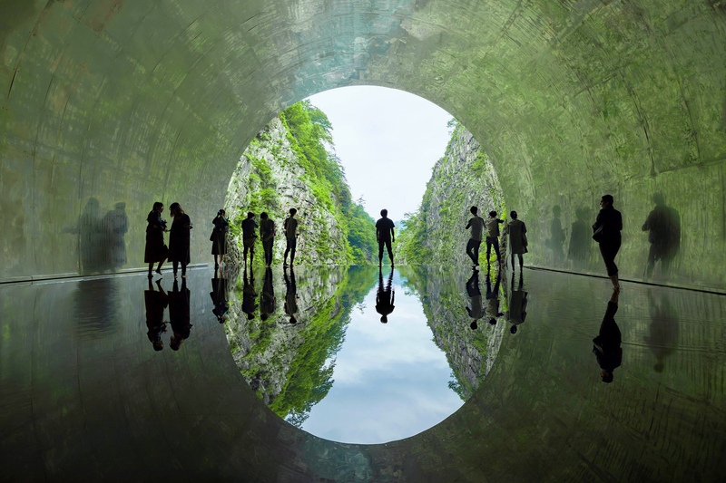 清津峽溪谷隧道是越後妻有大地藝術祭必去的景點之一。中國著名建築師馬岩松與MAD建築師事務所團隊爲這全長計有750米的隧道及周圍的諸多設施進行了翻新。其中,他們爲隧道盡頭的瞭望臺創造了一個「光洞」(Light Cave),除了讓隧道外的壯麗風景通過洞口盡收眼簾,洞内泳池也將越後妻有讓人讚嘆的景色倒影在水面,形成了洞内洞外的人間仙境。