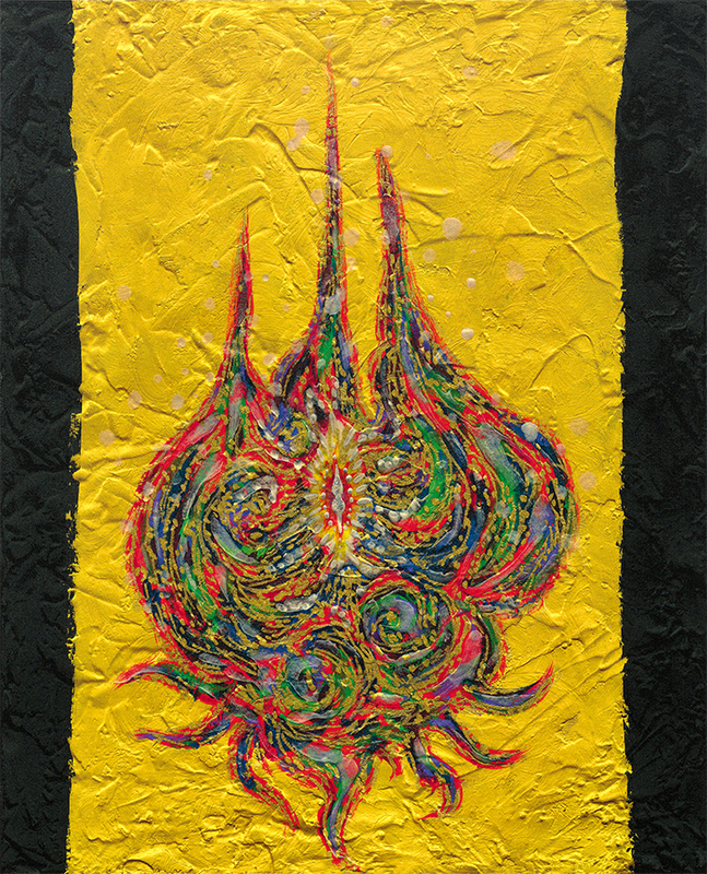 小松美羽(1984-)出生於長野,2004年畢業於女子美術短期大學部。創作以描繪靈獸為主題,其充滿生機的線條和豐富的色調散發出強烈的視覺張力。作品長期著眼於生死議題,獨特的作品世界觀使她的作品帶有神祕色彩與精神寓意,極具表驗性的繪畫過程,創作出澎湃激揚的畫面。2012 年於「北野美術館」舉辦個展;2015年在倫敦「切爾西花展」(Chelsea Flower Show )上展出的有田燒(ありたやき)狛犬作品「天地の守護獣」,獲得金獎殊榮,更被英國大英博物館永久典藏。