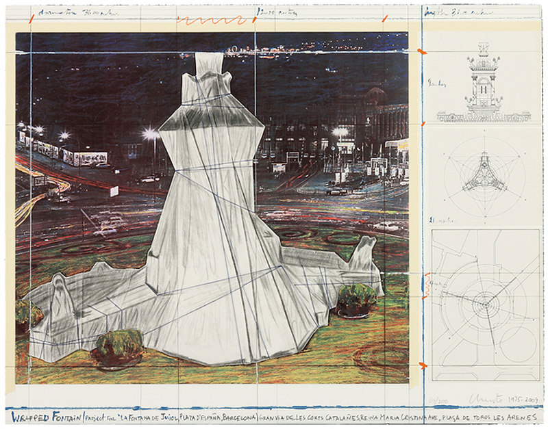 《Wrapped Fountain》作品以石版畫結合拼貼的方式呈現,是當初克里斯多與珍妮克勞德計劃在西班牙巴塞隆納的Plaza de España廣場,包捆噴泉La Fontana de Jujol,可惜最後並未實行。