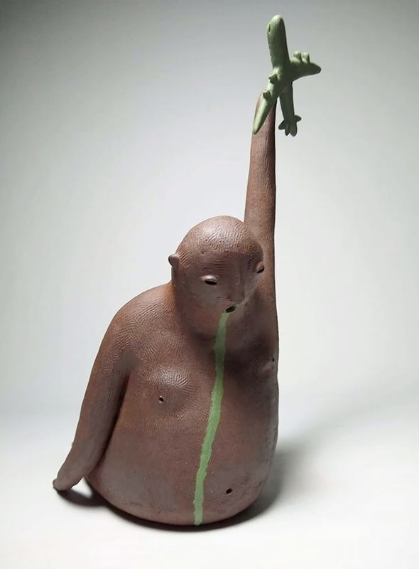 陶土、染料、釉料、黃金、鋼材 33x12x61(H) cm