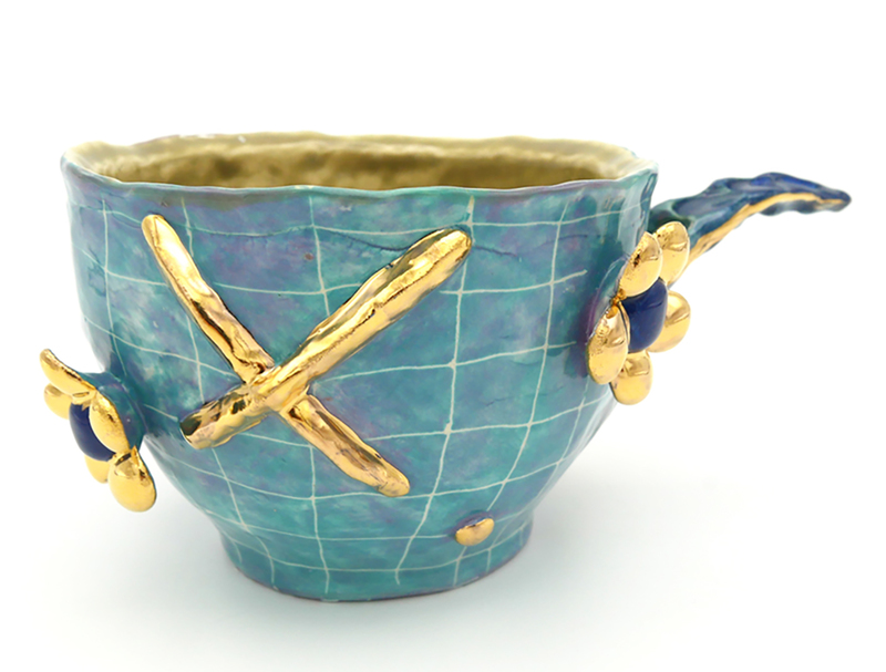 陶土、染料、釉料、黃金、鋼材 33x12x61(H) cm