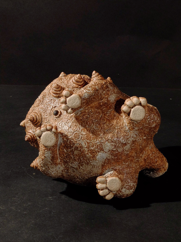 來自日本福岡的田崎太郎,因為小時候迷上了動畫裡的異想天開,而素有科幻小說之父的朱爾·凡爾納更是啟發了田崎太郎的重要影響,藝術家的陶土創作中總充滿著奇幻生物形象。在藝術家的創作中,沒有一絲絢麗的色彩,只有棕褐色的黏土釉料原始顏色來代表懷舊的記憶,這也反映了田崎對這個世界的寄望,對他而言,自從人類在遠古時代發現火後,人類的文明發展似乎都會上演著成搶奪資源戲碼。所以對田崎而言,藉由創作帶有諷刺及幽默的作品才能顯現出矛盾的的人類本質。 作品收藏於日本駐巴塞羅那總領事館、茨城縣陶藝美術館。過去作品曾展覽於栃木縣宇都宮美術館、新瀉縣大地藝術節、千葉縣佐倉市立美術館、紐約俱樂部畫廊、東京藝術博覽會、茨城縣陶藝美術館等國際機構。