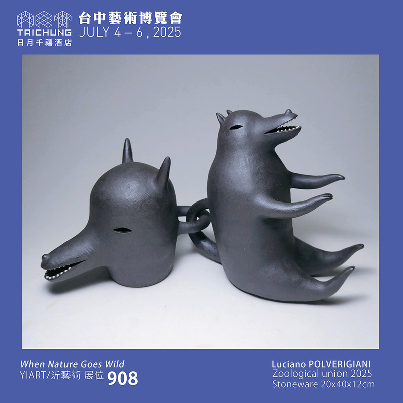 來自日本的出口雄樹,帶來新作〈Under the Moon〉與致敬葛飾北齋的〈Re-Hokusai〉系列——在傳統與現代之間遊走,用細膩的筆觸重塑怪物的身影,讓它們呈現獨特的容貌。阿根廷藝術家 Luciano Polverigiani 運用南美洲傳統陶瓷工藝,創造出栩栩如生、充滿令人驚豔的物種。同時帶著時間的痕跡與手工的溫度。