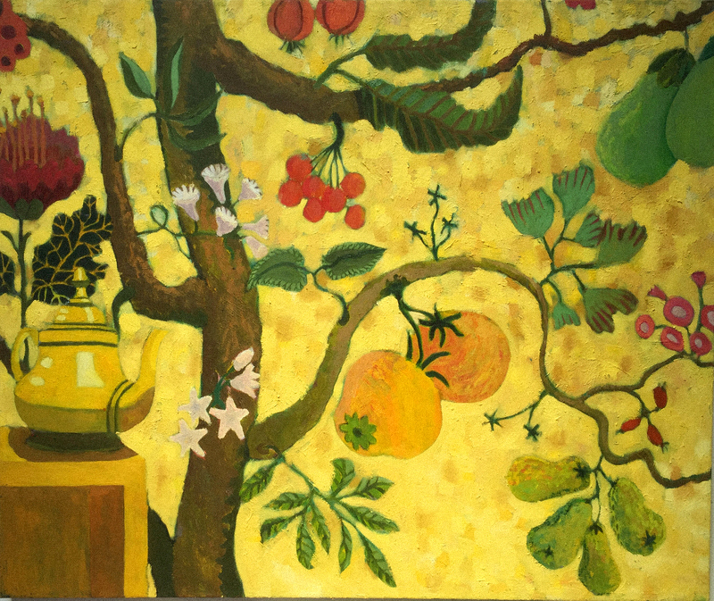 色彩斑斕、質樸直接的筆觸,是塞繆爾·博西尼的作品予人的第一印象。畫面中的植物及人物鮮活靈動,律動感極強,看似具象,卻又與現實狀態有些抽離。誰能預想得到,這一幅幅植物與人物作品是出自於一位詩人之手。