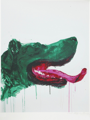 周春芽(1955-),出生於中國重慶。1988年畢業於德國卡塞爾綜合大學碩士。被譽為新表現主義中西融合代表人物,結合德國新表現主義與中國文人畫的傳統,創作他的作品結合了中國「文人畫」的傳統元素,創作反映了生活經驗與個人豐沛的情感,作品系列包括「桃花」、「剪羊毛」、「綠狗」等。多次受邀參加世界各地的大型展覽,如第53屆威尼斯國際藝術雙年展特別機構邀請展;2003巴黎龐畢度藝術中心的【你好,中國?】中國當代藝術展等。