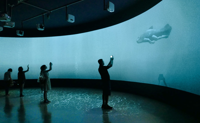 此次在台東美術館舉辦的個展<回歸大海> 是李小鏡過去三十年創作生涯的系列作品, 包含NEXT、馬戲團、叢林、夜生活、成果、審判、夢、自畫像、十二生肖、源和早期的第三色相共 11 個系列作品。 李小鏡此次展出的NEXT, 這件作品巧與台東臨海的地理環境呼應, 提出地球暖化危機所造成的環境變化以及人類未來生存的機能。