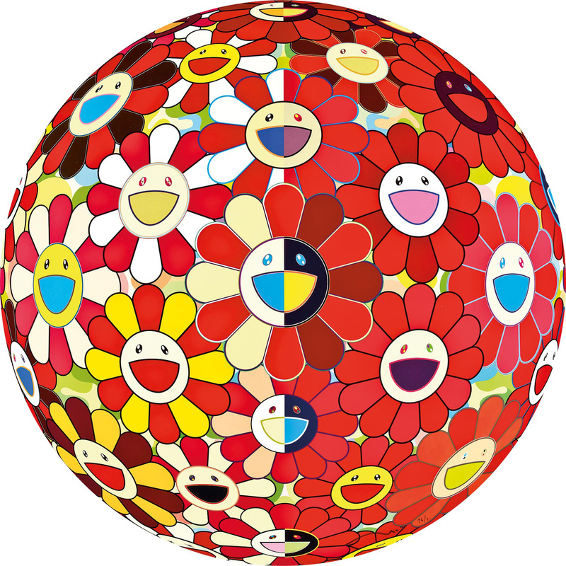 村上隆 (1962-) 日本藝術家,畢業於東京藝術大學。為後現代藝術風格–超扁平 (Superflat) 運動始祖,嘗試以可愛詭異的漫畫式圖像來嘲諷膚淺的大眾文化。作品特色豪放又色彩繽紛,帶有濃厚的卡通漫畫色彩。常與國際時裝保養品牌合作,如路易威登、植村秀等,過去曾於國際重要藝術機構巡迴展覽,包含洛杉磯當代藝術博物館、紐約布魯克林美術館、法蘭克福現代藝術美術館及畢爾包古根漢美術館舉辦大規模回顧展「©MURAKAMI」,並於2010年9月在法國凡爾賽宮舉辦個展。為2008年時代雜誌評選出最有影響力的100位人物中,唯一入選的視覺藝術家。目前為法國巴黎貝浩登畫廊簽約藝術家。