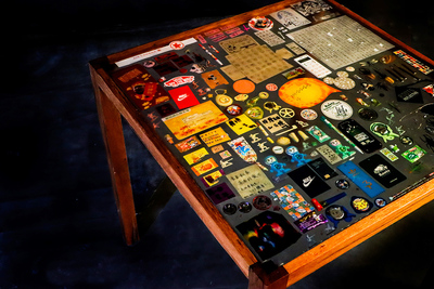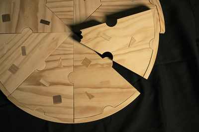 楠木、胡桃木、樟木、相思木、沙比利、櫻桃木、紅木鉛筆、夾板,展台:83x91x83cm/pieces, 陀螺:5x5x5cm/pieces