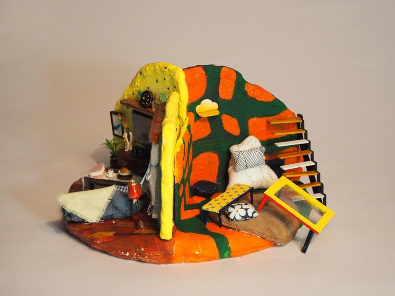 紙、色鉛筆、金屬繡線 60x45x6 cm, 80x55x10 cm, 42x50x20 cm