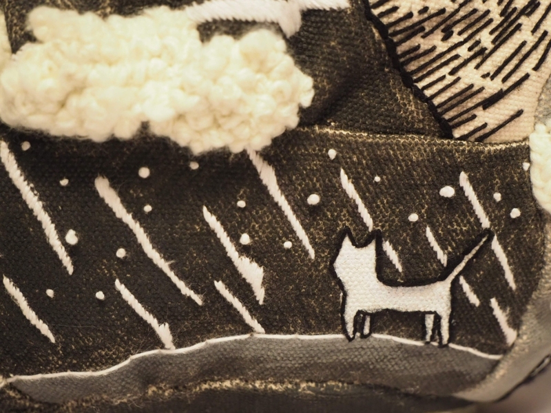 帆布、塑膠布、紗、繡線、絹印顏料 22x25 cm/piece