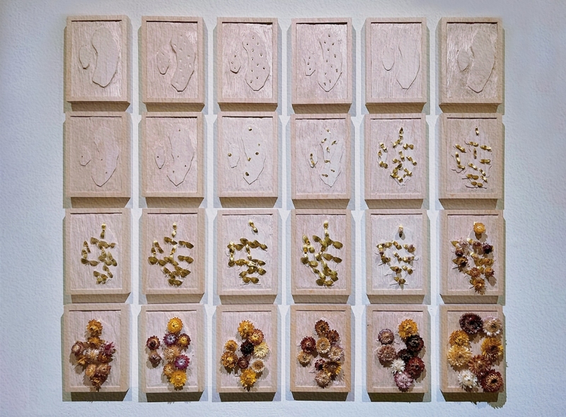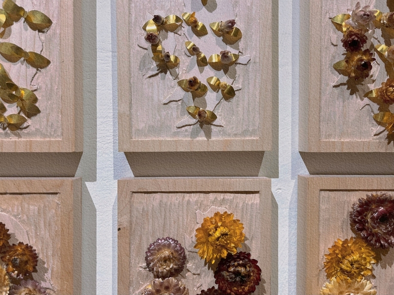 楓木、黃銅、麥桿菊 17x5x12 cm