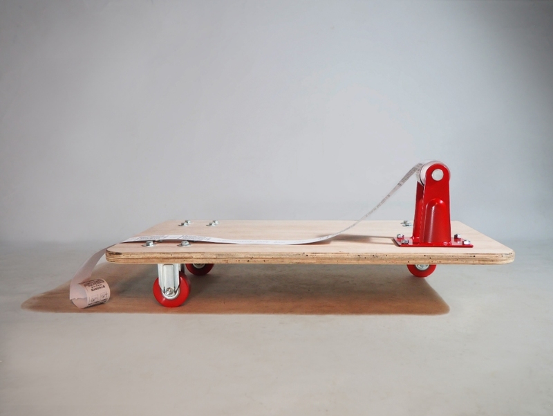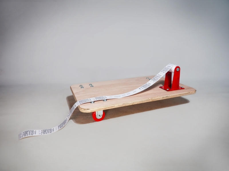 夾板、輪子、熱敏紙、六角螺桿 80x100 cm