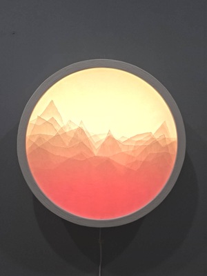 紙,油料、壓克力顏料、Arduino、LEDs、氣溫數據 41 cm x 41 cm x 9 cm