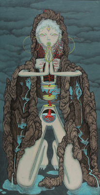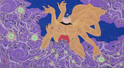 紙本膠彩、金泥、墨 70×40cm