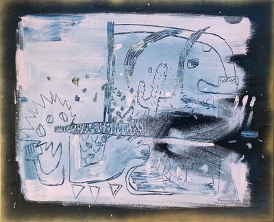 Oil, oil bar, spray paint on canvas 35x27cm