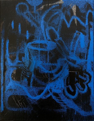 Oil, spray paint on canvas 53x65cm