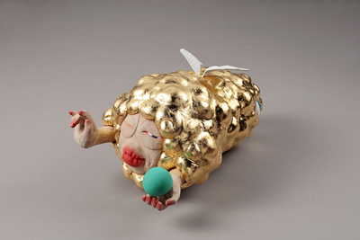 樟木、礦物顏料、胡粉、金箔 40x25x24cm