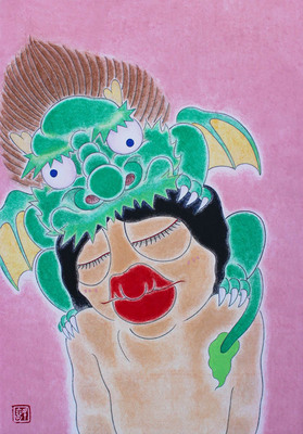 Oil, oil pastel, spray paint on canvas 53x45.5cm