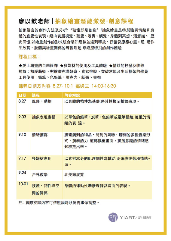 廖以歆老師| 抽象繪畫潛能激發-創意課程 8.27-10.1, 2025