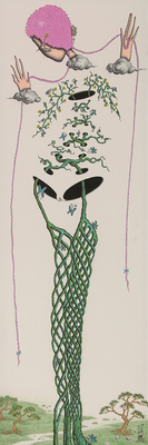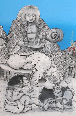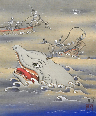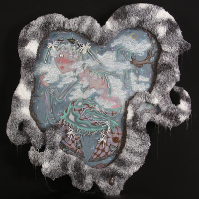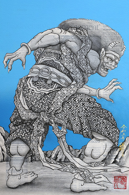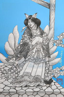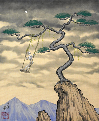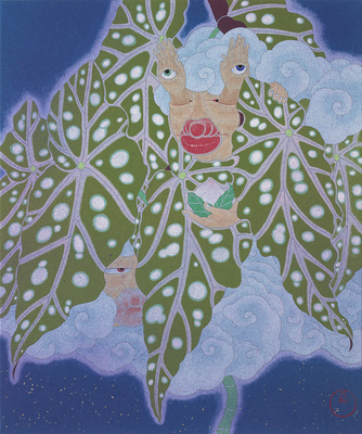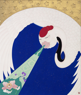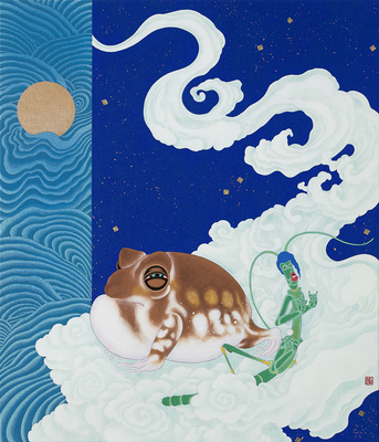 複合媒材 (墨, 膠, 岩絵具, 胡粉, 顔料) 、絹 44x36.5cm