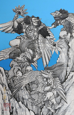 新聞報紙、墨、顔料、碳酸鈣 40.5x27cm