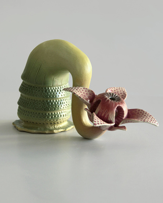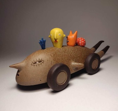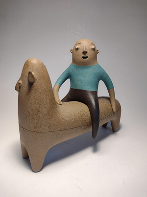 Stoneware with colored clay and wood ash 30 x11x12 cm